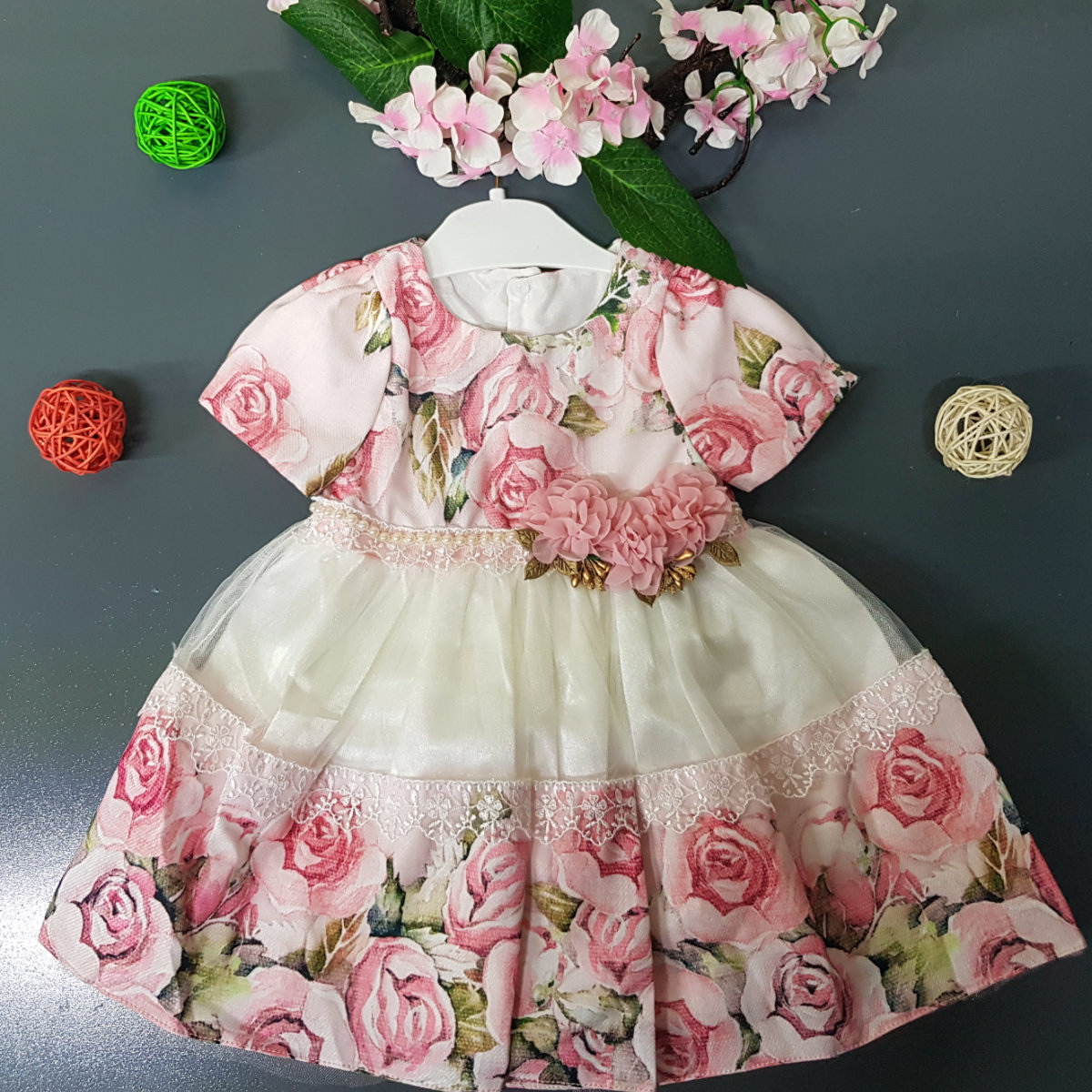 A simple but elegant floral print broken by net material with highlighting embroidery and bead work on the waistline. 2 layers of lining to add to the flare