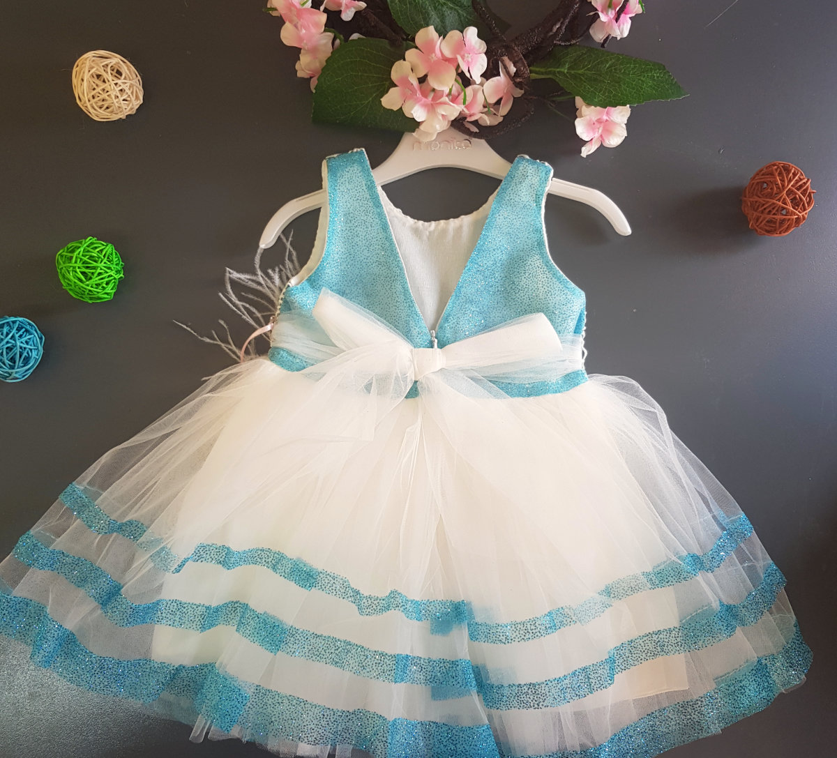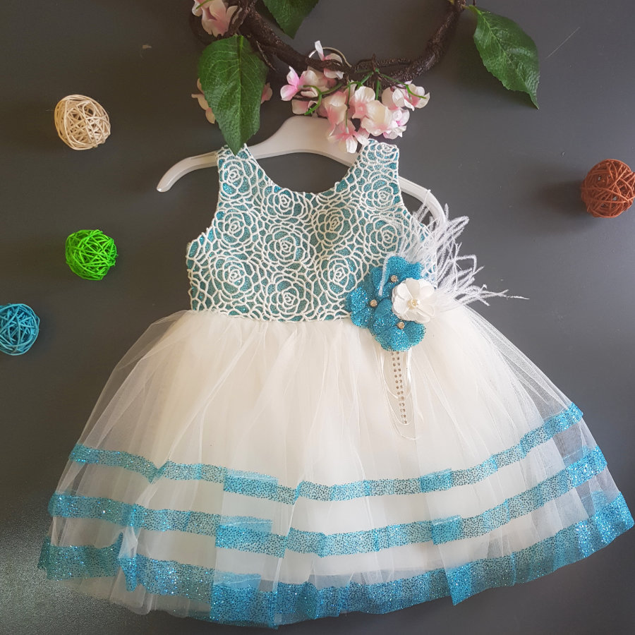 Premium quality net dress with contrasting white and arctic blue. 5 layers of lining protects the delicate skin of your little one and the embroidered top adds to the grandeur