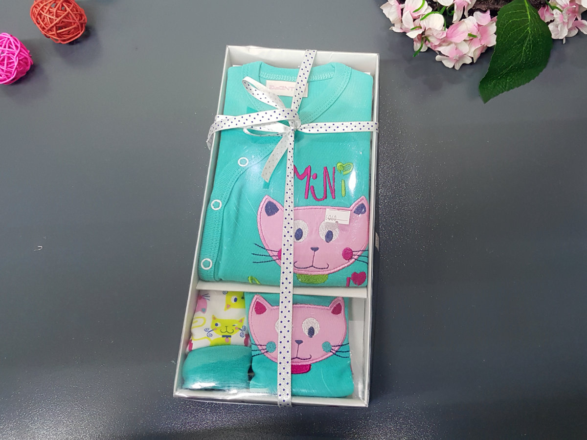 5 piece set including a top, pants, hat, bib and mitten for baby’s protection. Thick material for baby’s comfort.