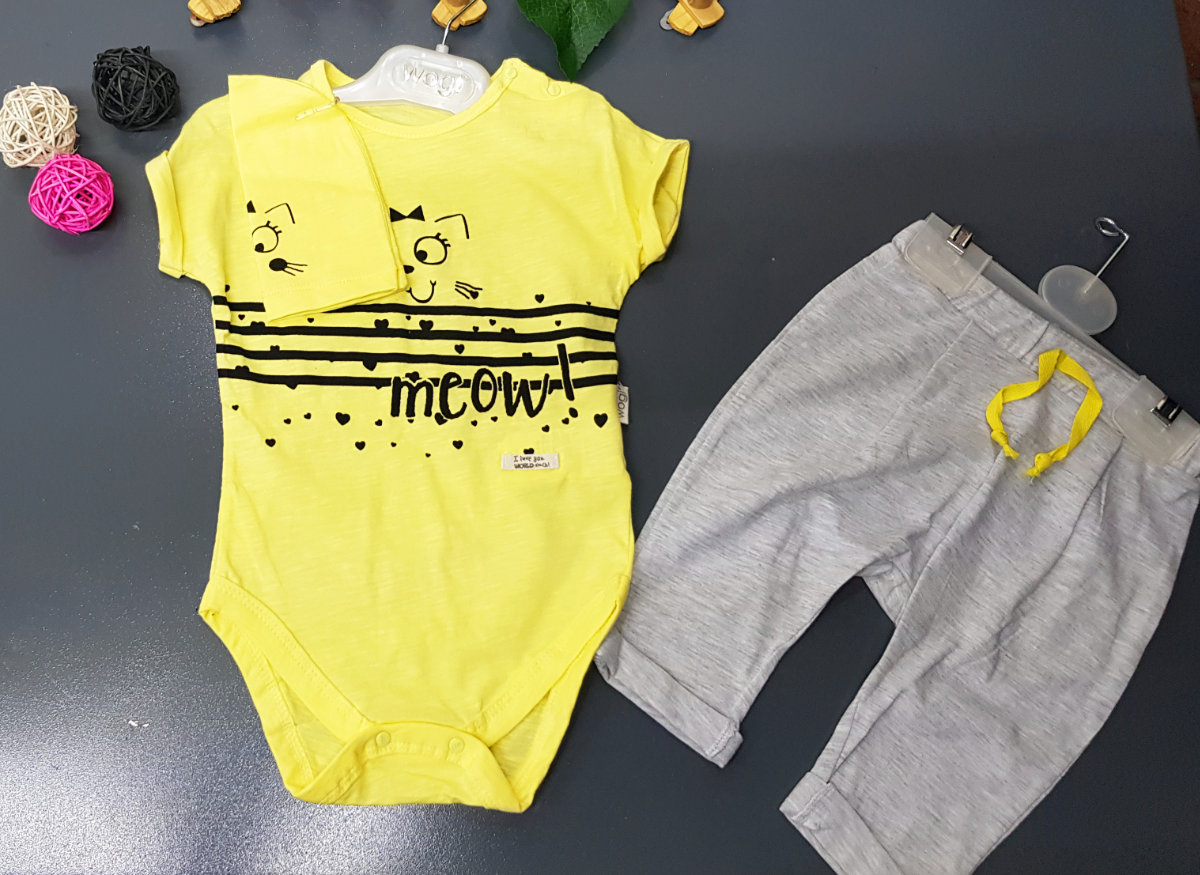 Baby yellow onesie with a pants for those chilly nights. A matching beanie to complete the outfit