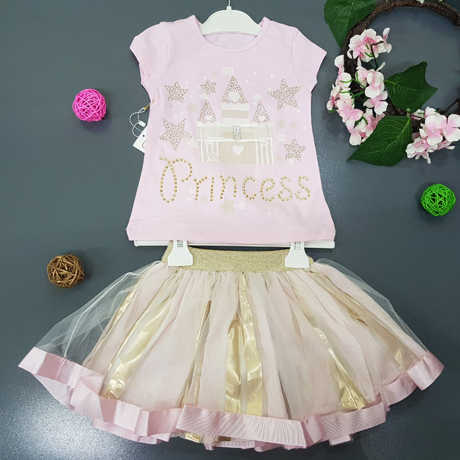 2 piece set: the baby pink top with stone work for a princess. The skirt has 3 layers of lining in multiple shades and rustic gold accents to add to the grandeur