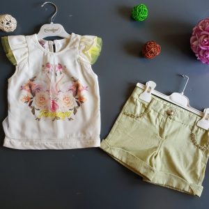 2 piece off-white and olive green dress set