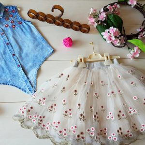 2 piece denim and white flare dress set