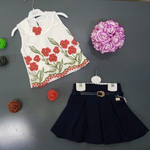 2 piece embroidered flower and navy blue dress set