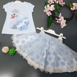 2 piece baby blue swan dress set