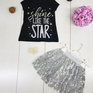 2 piece black and stary skirt dress set
