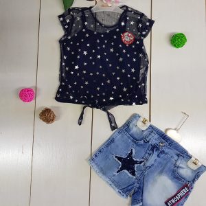 2 piece star patterned and denim short set