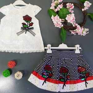 2 piece embroidered flower and navy blue dress set