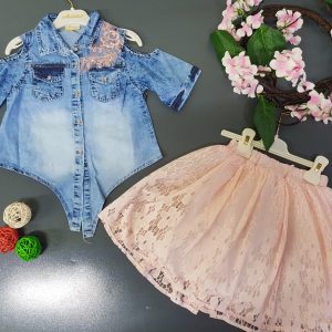 2 piece peach and denim dress set